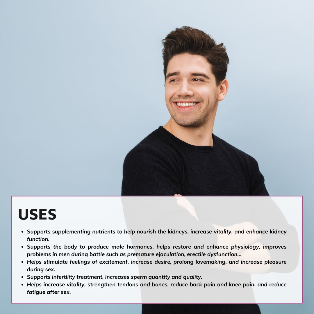 Formulated from premium Vietnamese medicinal herbs and produced in a GMP-certified facility, AGO MEN supports kidney function, boosts testosterone balance, and improves endurance — helping men stay strong, confident, and full of energy every day.