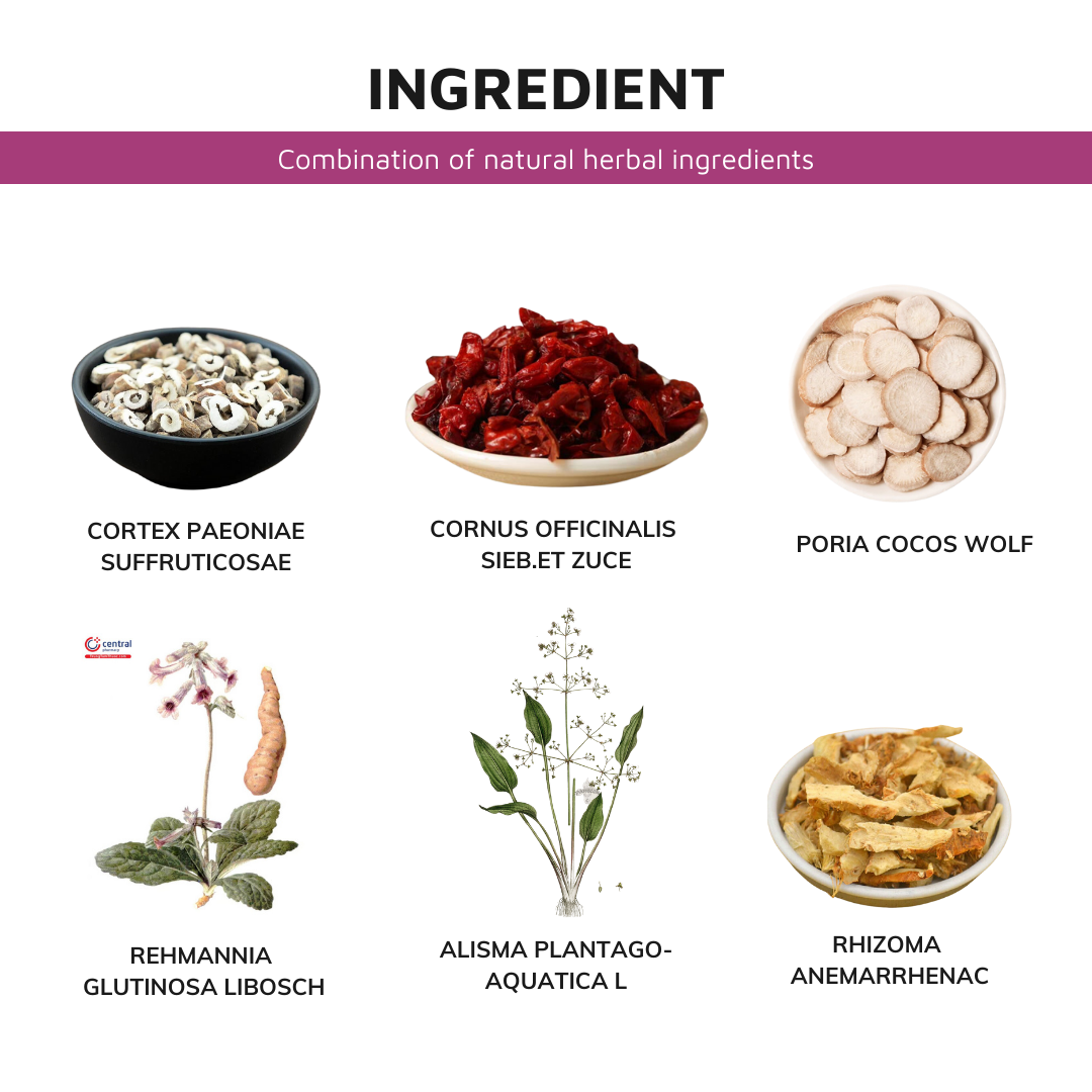 Cornus officinalis (Sơn Thù) – enhances kidney strength and vitality.